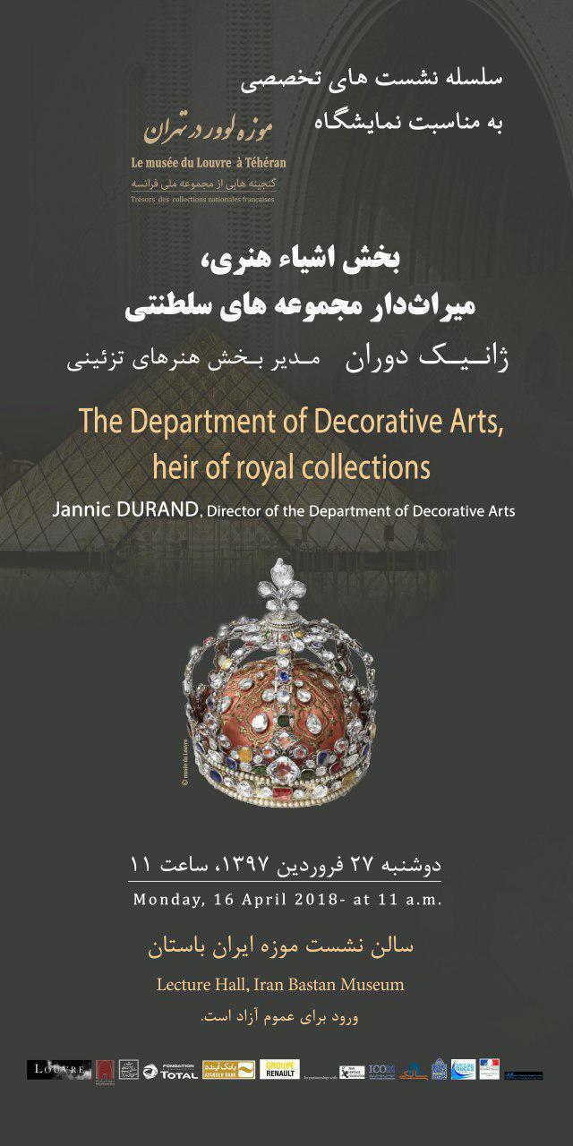 به گزارش گالري آنلاين به نقل از روابط عمومي موزه ملي ايران، در اين راستا نخستين نشست تخصصي جانبي نمايشگاه "موزه لوور در تهران" در روز دوشنبه، 27 فرودين، ساعت 11 صبح در تالار سخنراني موزه ايران باستان برگزار مي شود. عنوان اين نشست "بخش اشيا هنري، ميراث دار مجموعههاي سلطنتي" است که توسط آقاي ژانيک دوران، رئيس بخش اشياء هنري لوور ارائه ميشود. ژانيک دوران متصدي بايگاني–کتيبهشناس و امين اموال کل و مدير بخش اشيا هنري موزه لوور است. ايشان متخصص قرون وسطي، هنر بيزانس و مسئول دورههاي آموزشي مدرسه لوور است.