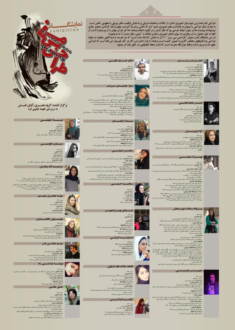 سرپرست گروه هنري آواي نقش ضمن تاکيد بر بي مرز و گسترده بودن هنر طراحي علت انتخاب عنوان و همچنين مفهومي که هنرمندان اين مجموعه به دنبال انتقال آن به مخاطب بوده اند گفت: تکنيک و ابزار کار و سبک اجرا محدوديتي در اين هنر ايجاد نمي کند به اين دليل اين نام را انتخاب کردم.