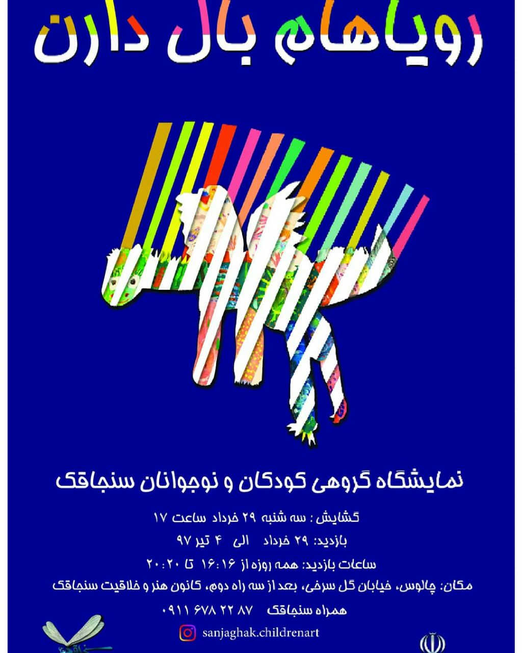 هفتمين نمايشگاه سالانه،کانون هنر و خلاقيت کودک سنجاقک چالوس تحت عنوان " روياهام بال دارن" از 29 خرداد تا 4 تير در مکان کانون هنر سنجاقک برگزار ميشود.