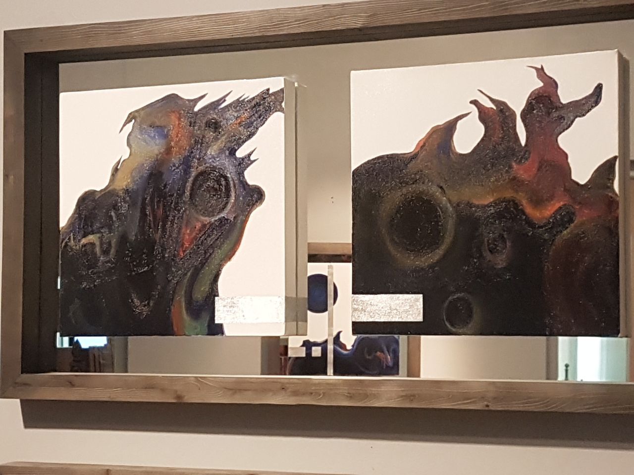 اين هنرمند در رابطه با آثارش مي گويد: تکنيک کارهاي من آکريليک و ميکس مديا است و در پس زمينه کارم از آينه استفاده کرده‌ام. اين پنج اثر از مجموعه «طبيعت من» است. قبلا آثار من بصورت فيگوراتيو بود ولي الان در اين آثار اصلا فيگور را نياوردم. درون يک زن را کار کردم، چون خودم يک زن هستم و مي خواهم که مردم و مخاطب در آينه خودشان را با من درگير کرده و ببينند.