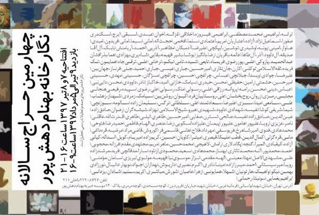 چهارمين حراج آثار هنري نگارخانه بهنام دهشپور از تاريخ ۷ تيرماه تا ۵ مردادماه برگزار ميشود.