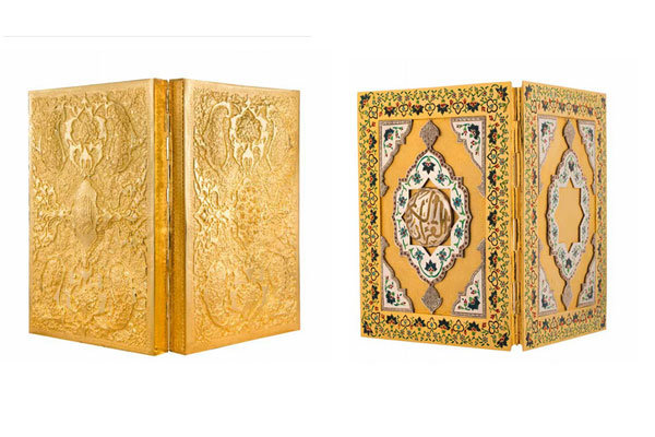 بزرگترين قرآن طلا و نقره جهان در ۶۰۴ صفحه توسط رايين اکبر خانزاده با خط عثمان طه نگارش شده است. در ساخت اين اثر يک و نيم کيلوگرم شمش طلاي ۲۴ عيار، ۱۵ کيلوگرم نقره و ۸۰ کيلوگرم مس به کار رفته است. صفحات اين قرآن از نقره خالص و سر سوره هاي آن طلاي ۱۸ عيار است. جلد قرآن از مس ساخته و با طلاي ۲۴ عيار آبکاري شده است. قلم زني اين اثر توسط مهدي عسگري، قلم زن عتبات عاليات در اصفهان انجام شده است و ساخت آن توسط تيمي ۵۰ نفره به مدت ۲ سال طول کشيده است. کتابت کوچکترين قرآن طلا و نقره جهان نيز توسط رايين اکبر خانزاده انجام شده است. ميناکاري جلد اين قرآن هنرنمايي اصغر فولادگر است و مدت زمان ساخت اين اثر نيز دو سال طول کشيده است.