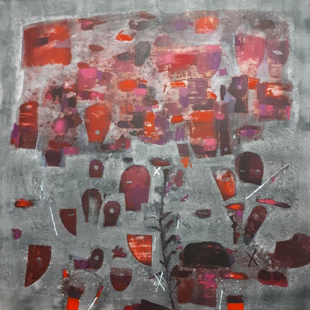 بنده در اين نمايشگاه با دو اثر در ابعاد۱×۱متر با تکنيک اکرليک و در ادامه همان آثار قبلي شرکت کردم. به لحاظ مفهومي آثار من،ارائه نوعي نوستالژي از بارقه هاي تصويري و معنوي سرزمينم است. در پي يافتن نوعي از بوميت هستم و همواره متاثر از فضاي اساطيري و معنوي، سعي در نمايشي از دنياي رمزگونه و رازوارگي است و در مواقعي اشاره رمز آميز مرگ و زندگيست. و همواره کنش نقاشانه در آنها از اهميت بسزايي برخوردار است.