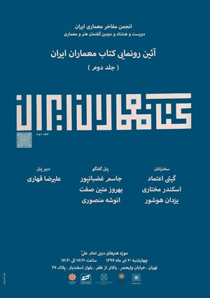 جلد دوم کتاب معماران ايران با حضور اساتيد و چهره‌هاي برجسته در دويست و هشتاد و دومين گفتمان هنر و معماري رونمايي مي‌شود.