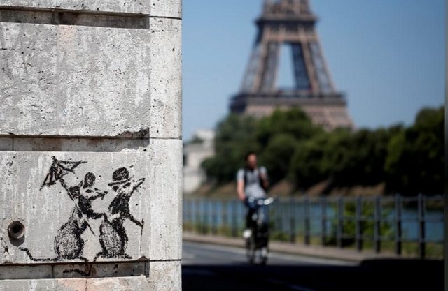 به گزارش گالري آنلاين به نقل از ايسنا، اين هنرمند خياباني انگليسي که هويت اصلي آن نامشخص است و براي خلق آثار گرافيتي روي ديوارهاي شهرهاي مختلف از لندن و نيويورک تا غزه به شهرت فراواني دست يافته جديدترين آثار خود را که همچون گذشته با مضامين سياسي همراه است در خيابانهاي پاريس خلق کرده است.