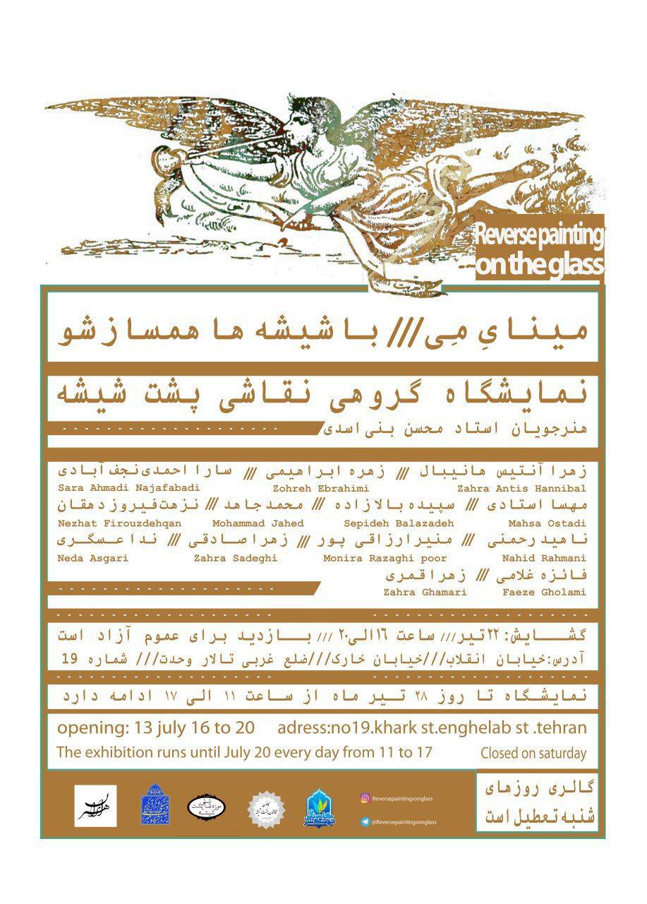 نمايشگاه گروهي نقاشي پشت شيشه از هنرجويان استاد محسن بني اسدي با عنوان مينايِ مِي ، روز جمعه ۲۲تيرماه در گالري هنر ايران برپا شد و مورد استقبال بي نظير هنرمندان ، هنردوستان و مجموعه داران قرار گرفت و با حضور رييس موزه نقاشي پشت شيشه (آقاي کارخاني) و اساتيد پيشکسوت اين هنر ، رونق دو چندان گرفت.