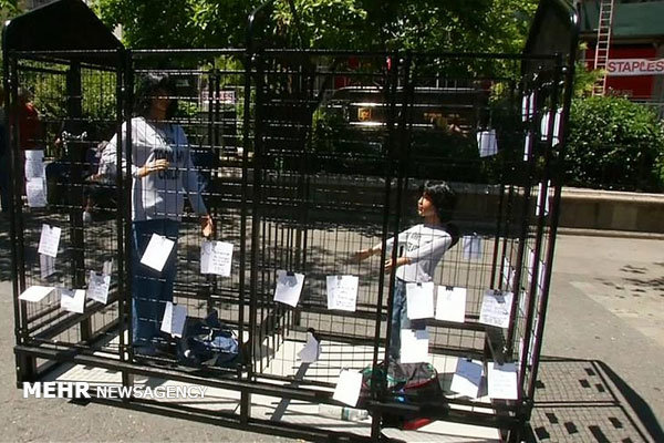 مرلين ميلر هنرمند ۷۵ ساله آمريکايي با اجراي يک چيدمان به رفتار ترامپ رييس جمهوري آمريکا با مهاجران انتقاد کرد.