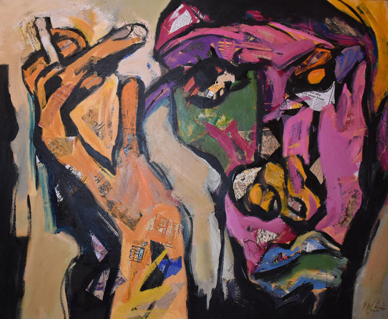 پرداختن به موجوديتي به نام انسان معاصر که در مناسبات کنوني از هستي خود به دور مانده است و در انزواي محتومي گرفتار آمده از دغدغه هاي وجودي من است. اين بيگانگي از خود و سرگشتگي آدمي که در کالبد زمان ما جاري و ساري است، مرا به واکنشي فعال کشانده و پاسخي دروني را برايش جستجو ميکنم، از اينرو با نگاهي انتقادي و درونمايه اي احساسي با آن مواجه شده ام. اينهمه از حساسيتهايي است که تلاش مي کند دنياي ديگري را برايم رقم زند، دنيايي که در آن تخريب وضعيت کنوني با هدف بازآفريني طرحي نو از انسان و هستي او صورت گرفته است. بر اين اساس قالب اثر را در نوعي سياليت پويا همراه با تکنيک کلاژ تخريبي شکل داده ام.