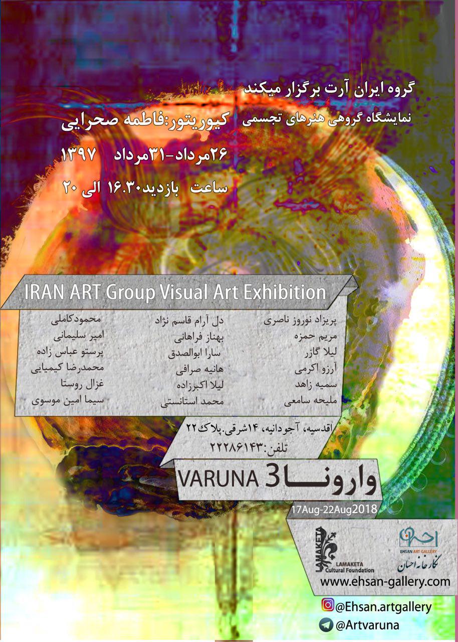 نمايشگاه گروه ايران آرت تحت عنوان "وارونا 3" به كيوريتوري فاطمه صحرايي اين بار با 18 هنرمند و 27 اثر شامل مدياي نقاشي، حجم و عكس در گالري احسان برپا شد.