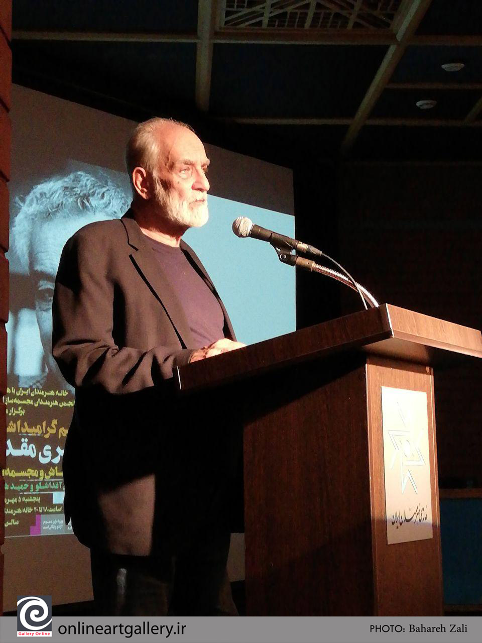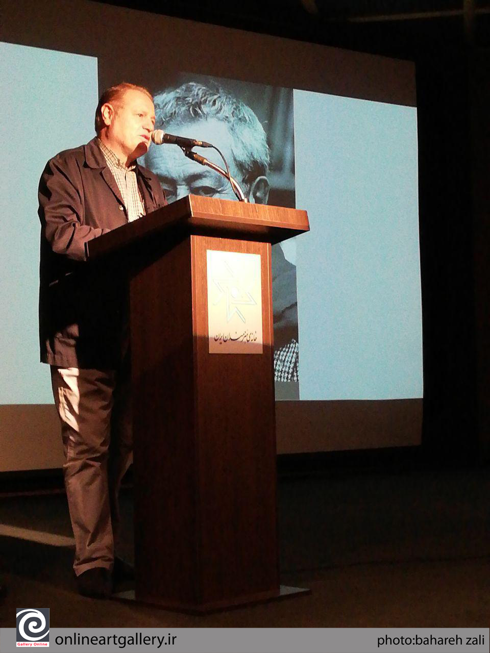 سپس آيدين آغداشلو به روي صحنه آمد و با اشاره بر اينکه هر هنرمندي رسالتي براي انجام کارش دارد در مورد شخصت خاص اين هنرمند صحبت کرد و گفت: او به دوره اي تعلق داشت که هنرمندان مي آموختند و سپس درس ميدادند و مي پروراندند. او نيز همان کار را کرد، بسيار آموخت، جستجو کرد و دانست چه کسي هست و کجا ايستاده و چه کار ميکند.