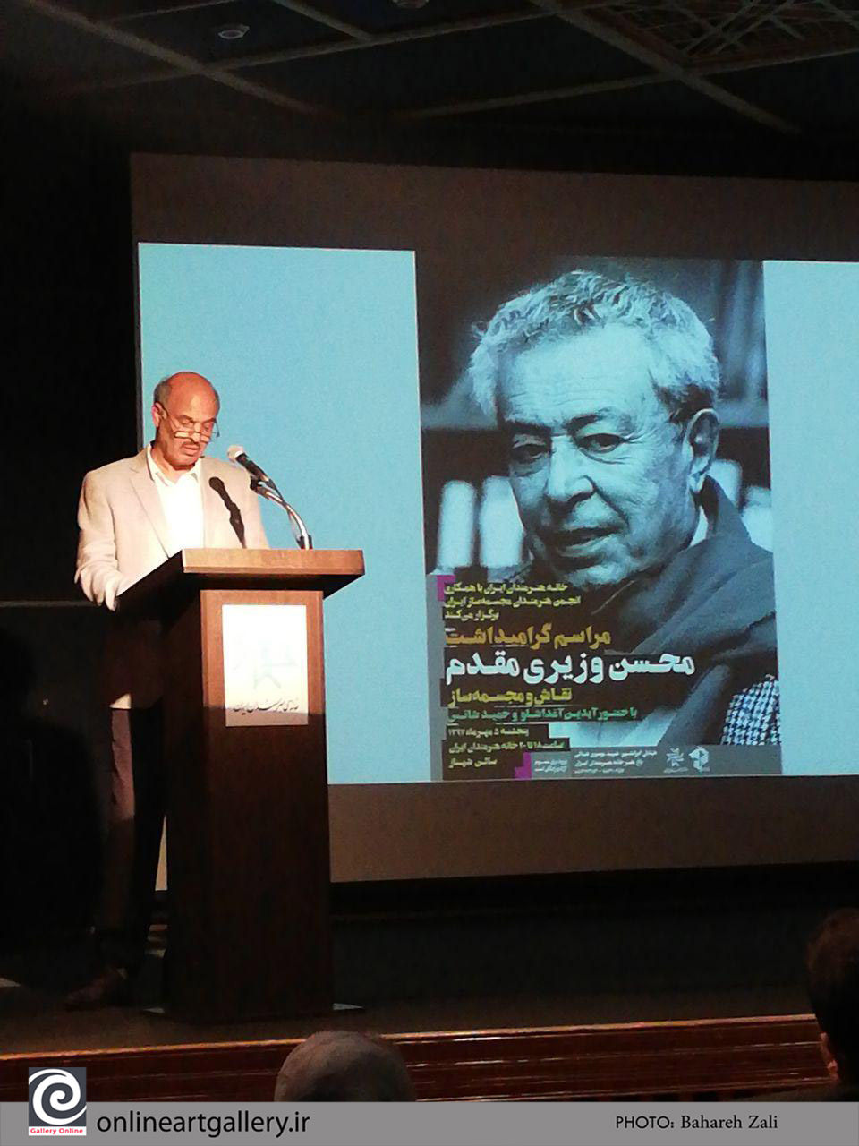 مراسم گراميداشت محسن وزيري مقدم طراح، نقاش و مجسمهساز معاصر ايران با حضور هنرمندان، هنردوستان، هامون و هومن وزيري مقدم فرزندان زنده ياد محسن وزيري مقدم، آيدين آغداشلو و حميد شانس در سالن شهناز خانه هنرمندان ايران برگزار شد.