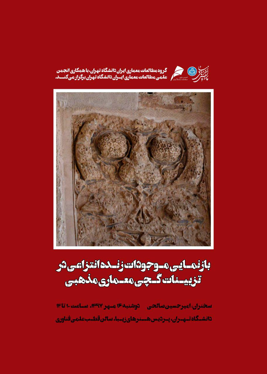 نشست «بازنمايي موجودات زنده انتزاعي در تزيينات گچي معماري مذهبي» با سخنراني اميرحسين صالحي دوشنبه ۱۶ مهرماه در پرديس هنرهاي زيبا دانشگاه تهران برگزار مي شود.