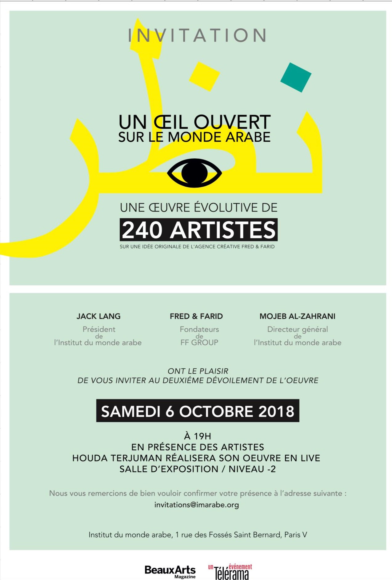 اين مركز هنرى معروف پاريس تاكنون فقط آثار هنرمندان دنياى عرب ومسلمان را به نمايش مى گذاشت و هنرمندان ايرانى راهى اين مركز هنرى نداشتند انستيتو دنياى عرب از هنرمند ايرانى ساكن فرانسه خواست تا ضمن شركت در اين رويداد هنرى ديگر هنرمندان ايرانى را نيز به اين نمايشكاه معتبر دعوت كند.