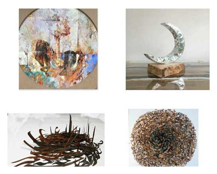 حجم سفالين دوراني از «اميرحسين کوليوند» از لرستان که نمايي از حروف  در هم تنيده و ترکيبي از سفال ،سراميک و خوشنويسي را خلق کرده در کنار مجسمه اي از فلز که با حروف فرم گرفته با عنوان رستاخيز برگرفته از شعر «محتشم کاشاني » با همين عنوان  از «حسين اکرمي » هنرمند کاشاني به تماشا در خواهد آمد . « عليرضا بند گلستاني » از مشهد نيز هنرمند ديگر حاضر در اين آرت فر است و حجم آيينه کاري زيبايي را به شکل هلال ماه در قطع دو متر به ابوظبي مي برد .