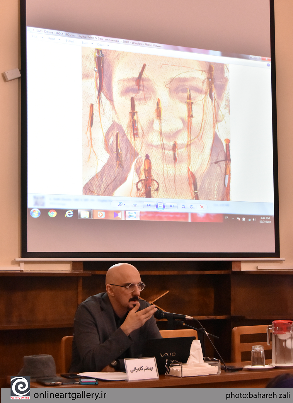 کامراني طي صحبت هاي خود پيرامون خاطره و نوستالژي درهنرمعاصر، نگاهي گذرا به آثار برخي هنرمندان عصر حاضر داشت که در ادامه به مختصري از آنها ميپردازيم.