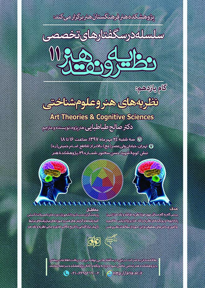 يازدهمين درسگفتار از «سلسله درسگفتارهاي تخصصي نظريه و نقد هنر» با عنوان «نظريه هاي هنر و علوم شناختي» با سخنراني «دكتر صالح طباطبايي» در پژوهشکده هنر فرهنگستان هنر برگزار ميشود.