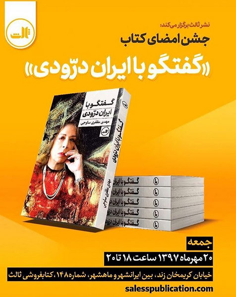 به گزارش گالري آنلاين، مراسم رونمايي از اين کتاب که مهدي مظفري ساوجي با ايران درّودي گفتوگو کرده و اولين چاپ آن در ۱۹۸ صفحه و با قيمت ۲۵۰۰۰ تومان شهريورماه امسال توسط نشر ثالث منتشر شده است، از ساعت 18 الي 20 عصر روز جمعه 20 مهرماه با حضور ايران درودي هنرمند نقاش در کتابفروشي ثالث برگزار شد.