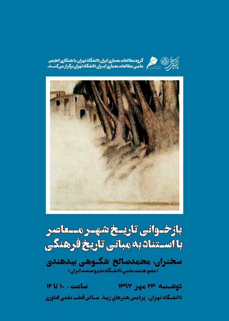 گروه مطالعات معماري ايران دانشگاه تهران با همکاري انجمن علمي مطالعات معماري ايران دانشگاه تهران نشست «بازخواني تاريخ شهر معاصر با استناد به مباني تاريخ فرهنگي» را برگزار مي کند.