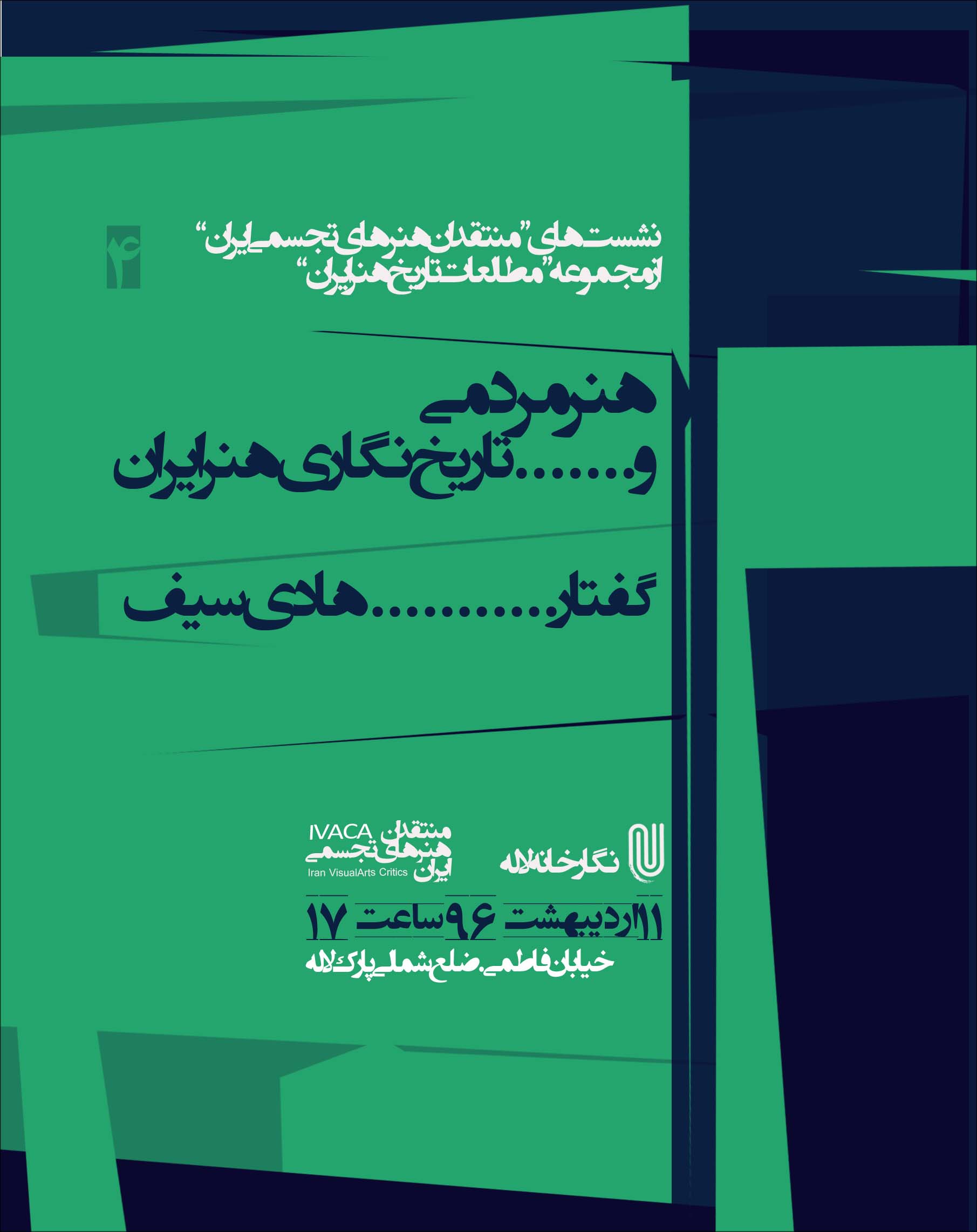 هادي سيف نويسنده و پژوهشگر هنر که تاليفات متعددي از جمله مجموعه " دانشنامه هنرهاي مردمي ايران" را در کارنامه دارد، در اين نشست، جريانهاي هنر مردمي ايران را واکاوي خواهد کرد.