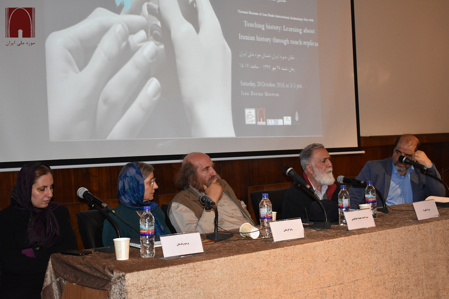با همکاري ايشان دو نفراز مربيان حسي و لمسي نابينايان به ما معرفي شدند تا با ما و بچه ها همراه باشند و به اين صورت اين کارگاه شکل گرفت. در اين کارگاه از ۱۱ نفر از دانش آموزان رده سني ۱۵ و ۱۶ سال مرکز آموزشي نابينايان نرجس دعوت شد که همراه با مربيان خود در اين کارگاه حاضر شدند. در اين کارگاه تعدادي مولاژ در اختيار گروه قرار گرفت که آنها با شور و اشتياق غيرقابل وصفي مولاژ ها را لمس مي کردند. تعدادي مولاژ از يک سرديس يک شاهزاده هخامنشي در اختيار بچهها قرار گرفت که به عنوان الگو انتخاب شد و بچه ها با استفاده از خمير مجسمه سازي و برداشت شخصي خود دست به ساخت نمونه زدند. نتيجه کار نمايشگاه کوچکي شد که در سالن ايران باستان به نمايش گذاشته شده است. در ادامه اعضاي پنل با مديريت استاد کلهرنيا به بحث درخصوص آموزش هنر به افراد داراي شرايط ويژه پرداختند.