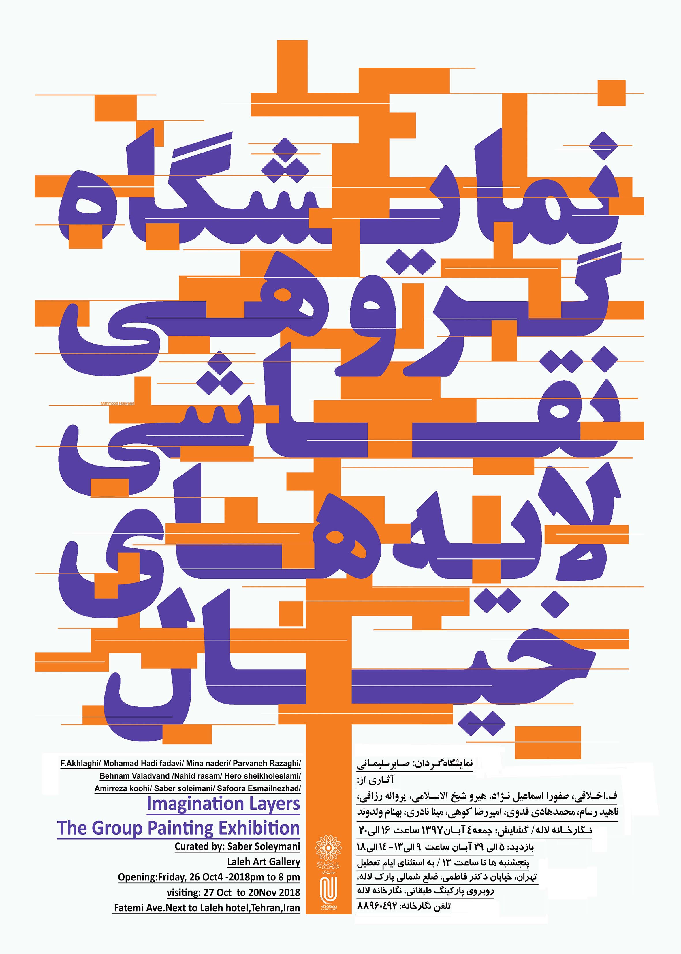 نمايشگاه نقاشي لايه هاي خيال، روز جمعه 4 آبان ماه 1397 ساعت 16 تا 20 در نگارخانه لاله گشايش مي يابد و براي بازديد از 5 تا 29 آبان به جز ايام تعطيل ساعت 9تا13 و 14تا 18و روزهاي پنجشنبه تا ساعت 13ادامه خواهد يافت.