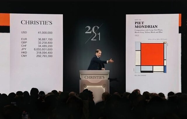 ممکن است عجیب به نظر برسد که نقاشیای که ۴۷ میلیون دلار فروخته شده، یک فروش ناکام تلقی شود، اما درباره بازار شاهکارها صحبت میکنیم، بهویژه وقتی رکورد جدیدی در راه است. «ترکیببندی با صفحه بزرگ قرمز، خاکستری مایل به آبی، زرد، سیاه و آبی»(۱۹۲۲) اثر «پیت موندریان»، جواهر گرانبهای مجموعه «لئونارد رجیو»، کلکسیونر بزرگ و بنیانگذار بارنز اند نوبل(Barnes and Noble) بود. برآورد شده بود که این نقاشی بیش از ۵۰ میلیون دلار فروخته شود و میتوانست رکورد قبلی «موندریان» را که در ۲۰۲۲ به قیمت ۵۱ میلیون دلار در ساتبیز برای «ترکیب شماره ۲»(۱۹۳۰) ثبت شده بود بشکند. قیمت نهایی برای شکستن رکورد باید بیش از ۴۴.۳ میلیون دلار میبود.