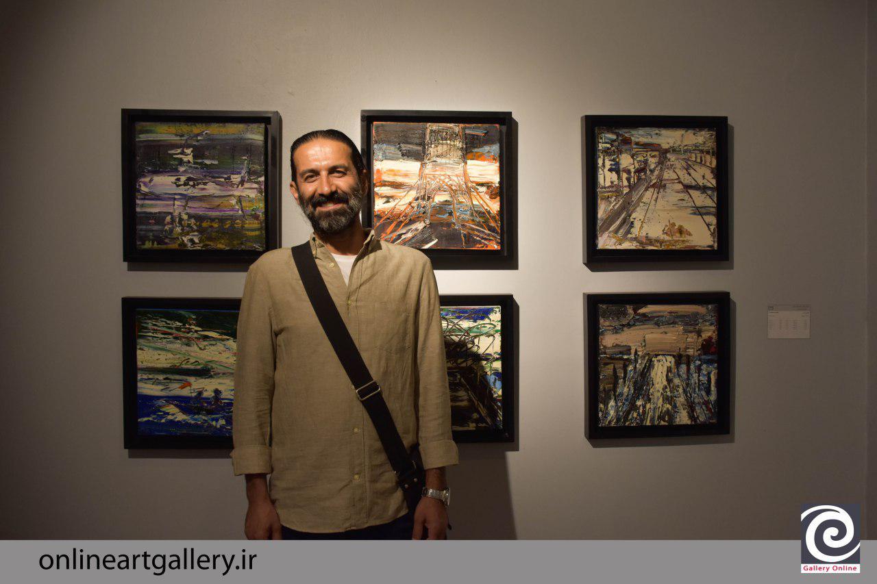 وي در رابطه با آثار خود در اين نمايشگاه اين چنين گفت: در اين نمايشگاه من با يک اثر شرکت کردم ، اين اثر يکي از آثار من از مجموعه « عبور » است که شهريور امسال، ۹۷، در گالري گلستان به نمايش گذاشته شد . اين اثر روي بوم اجرا شده و در آن از تکنيک ها، روشهاي مختلف و ميکس ( آکريليک ، چاپ ، آب رنگ ، مداد رنگي و … ) استفاده شده است.