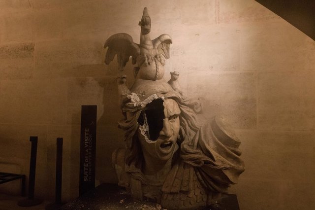 به گزارش گالري آنلاين، ايسنا به نقل از تايم نوشت، يک مجسمه که صورت آن خرد شده بود در نزديکي «طاق پيروزي» – بنايي در ميدان شارل دوگل و در انتهاي غربي خيابان شانزليزه پاريس – طي اعتراضات اخير «جليقه زرد»هاي پاريس ديده شده است.