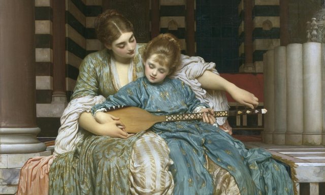 ژبه گزارش گالري آنلاين، ايسنا به نقل از گاردين نوشت، اثر نقاشي «درس موسيقي» توسط فردريک ليتون، نقاش و مجسمهساز در سال ۱۸۷۷ خلق شده است. گفته شده دختربچهاي که در اين نقاشي در حال يادگيري نواختن يک آلت موسيقي ترکي است، «کاني گيلکريست»، هنرپيشه امريکايي بوده است.