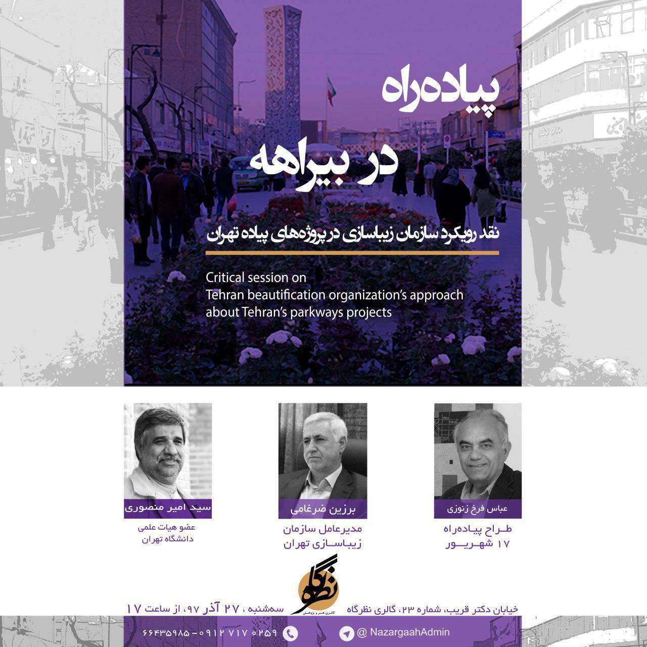 عباس فرخ زنوزي، طراح پياده راه 17 شهريور؛ برزين ضرغامي، مديرعامل سازمان زيباسازي تهران و سيد امير منصوري، عضو هيات علمي دانشگاه تهران از جمله سخنرانان اين نشست هستند.