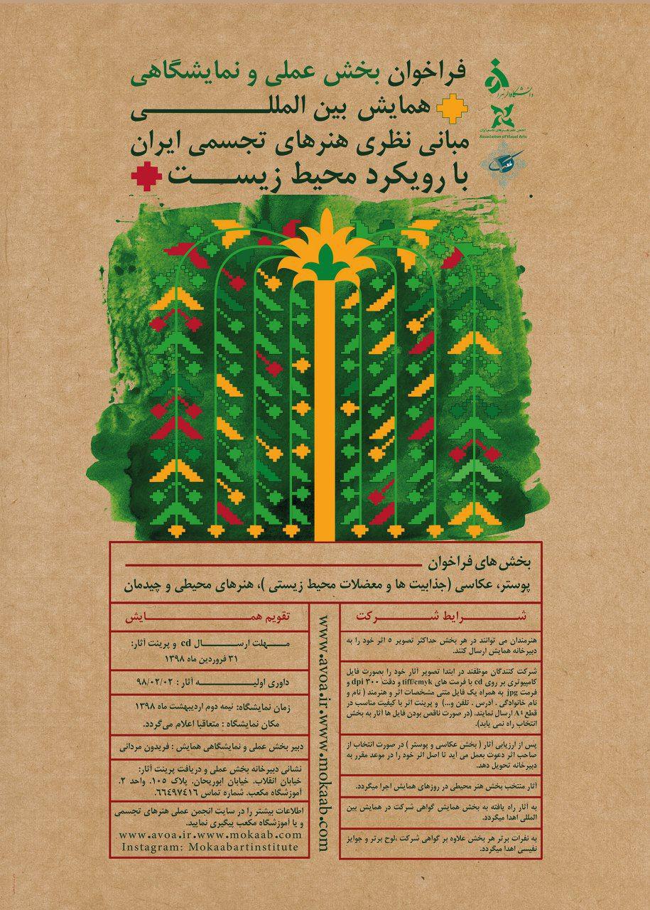 با تصميم شوراي سياستگذاري انجمن علمي هنرهاي تجسمي ايران، مهلت ارسال آثار بخش عملي دومين همايش بين المللي با رويکرد محيط زيست، شامل عکاسي، پوستر و طراحي محيطي تا پايان فروردين ماه 98 تمديد گرديد.