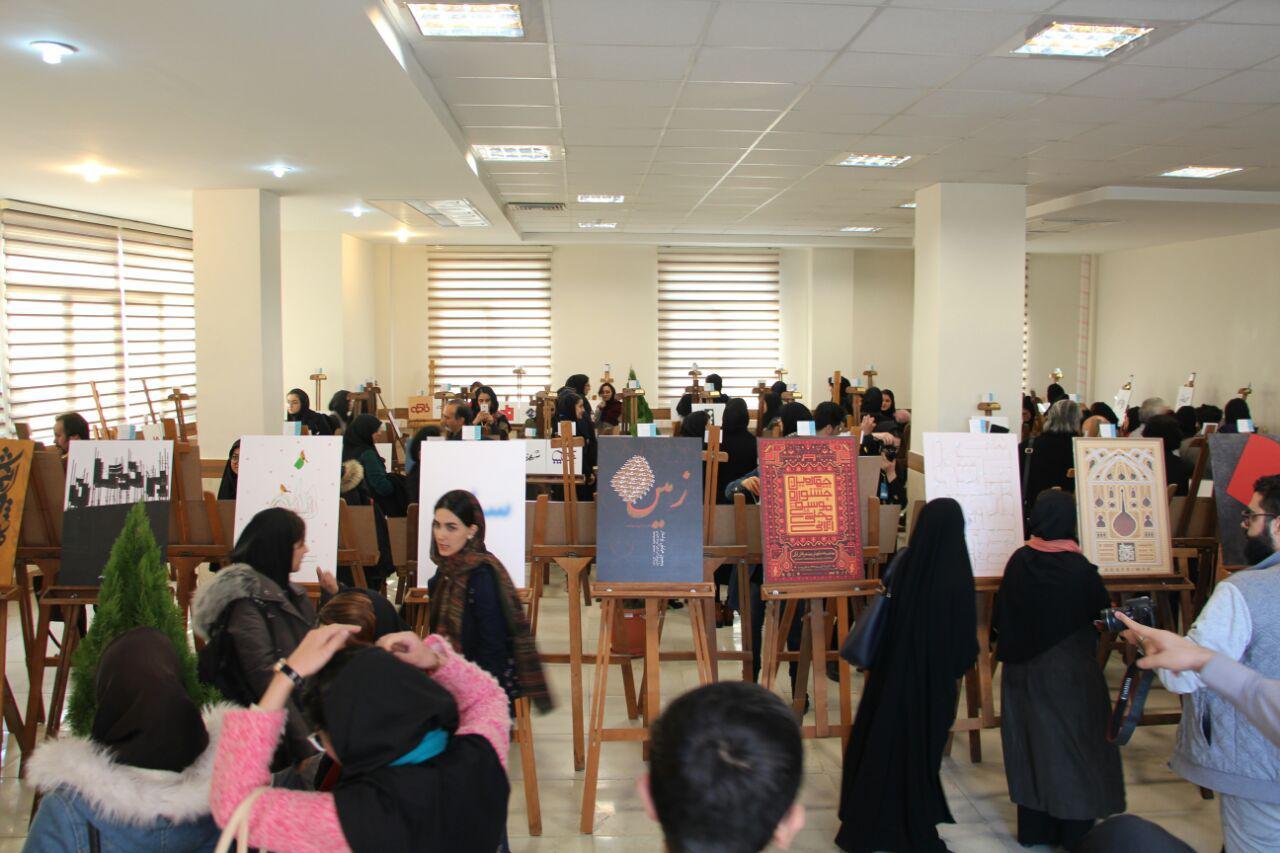 به گفته ي فريدون مرداني دبير بخش عملي و نمايشگاهي همايش ،پس از اعلام فراخوان عمومي در رسانه هاي گروهي، دبيرخانه همايش واقع در آموزشگاه مکعب، توانست تا ششم بهمن ماه سال جاري تعداد 1760 اثر هنري را از سراسر کشور گردآوري نمايد. از مجموع اين آثار ،تعداد 1340 اثر در بخش لوگوتايپ، تعداد 420 اثر مربوط به بخش پوستر و نقاشي خط بوده که در نهايت پس از ارزيابي آثار توسط هيات محترم داوران، تعداد 135 اثر در بخش لوگوتايپ و تعداد 35 اثر در بخش پوستر و نقاشي خط بعنوان آثار منتخب در نمايشگاه معرفي گرديدند. که پس از گشايش نمايشگاه، طي مراسمي با حضور اساتيد و مدعوين حاضر در مراسم افتتاحيه، از نفرات برتر سه بخش لوگوتايپ ،پوستر و نقاشي خط تقدير بعمل آمد.