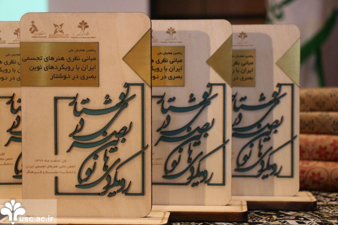 نمايشگاه منتخب آثار پنجمين همايش ملي مباني نظري هنرهاي تجسمي با رويکردهاي نوين بصري در نوشتار در سه بخش لوگوتايپ، پوستر و نقاشي خط، توسط انجمن علمي هنرهاي تجسمي ايران با همکاري معاونت دانشجويي فرهنگي دانشگاه علم و فرهنگ در مورخ يکم اسفند ماه 97 در گالري هنر اين دانشگاه برگزار شد.