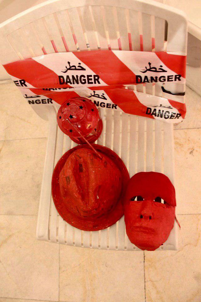 اين نوار مانند علائم هشداردهنده اي است که نشان دهنده منطقه خطر و ممنوعه است. درواقع به دليل فضاي خطرناکي است که در آثار نقاشي من حضور دارد و به اين شيوه اين فضا را به مخاطب بيشتر القا ميکنم.