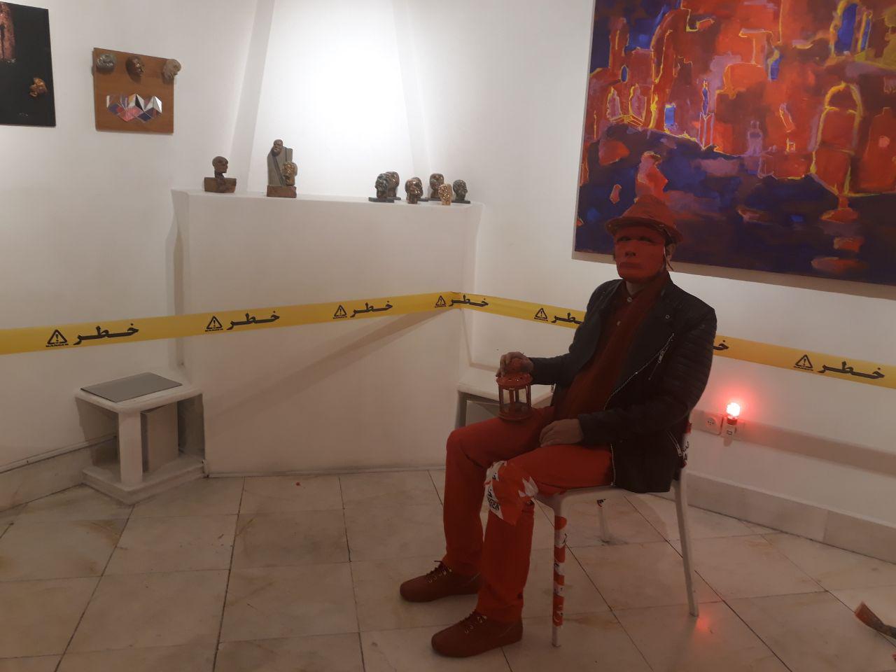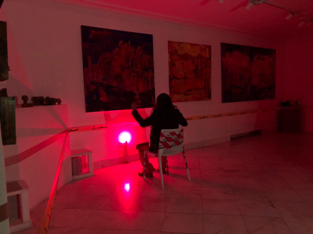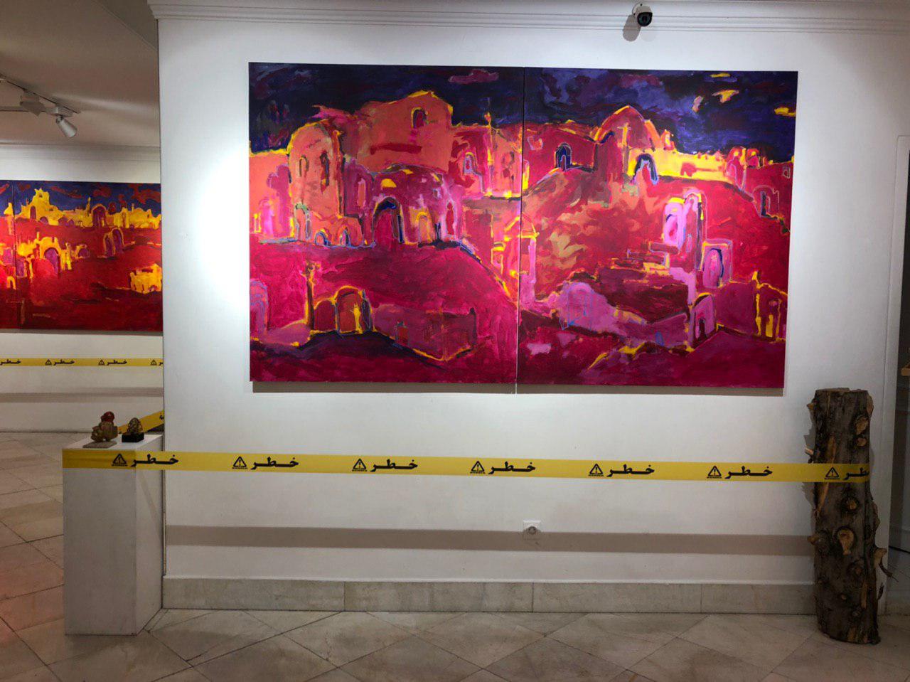 مخاطب هاي اين نمايشگاه براي ديدن آثار نقاشي دور تا دور ديوار هاي گالري با نوار زرد رنگ خطر مواجه ميشوند، که هنرمند در مورد اين نوار و فاصله ايجاد شده مخاطب با اثر توضيح ميدهد: