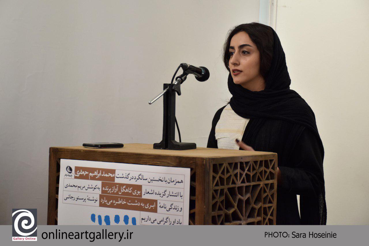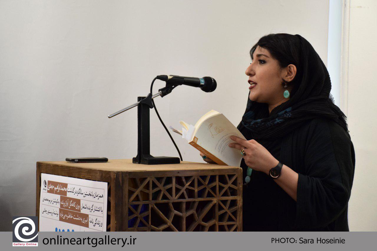دکتر سارا جعفري، هنرمند و استاد دانشگاه، دختر محمدابراهيم جعفري در ادامه مراسم دو شعر از پدر خود را بازخواني نمود.