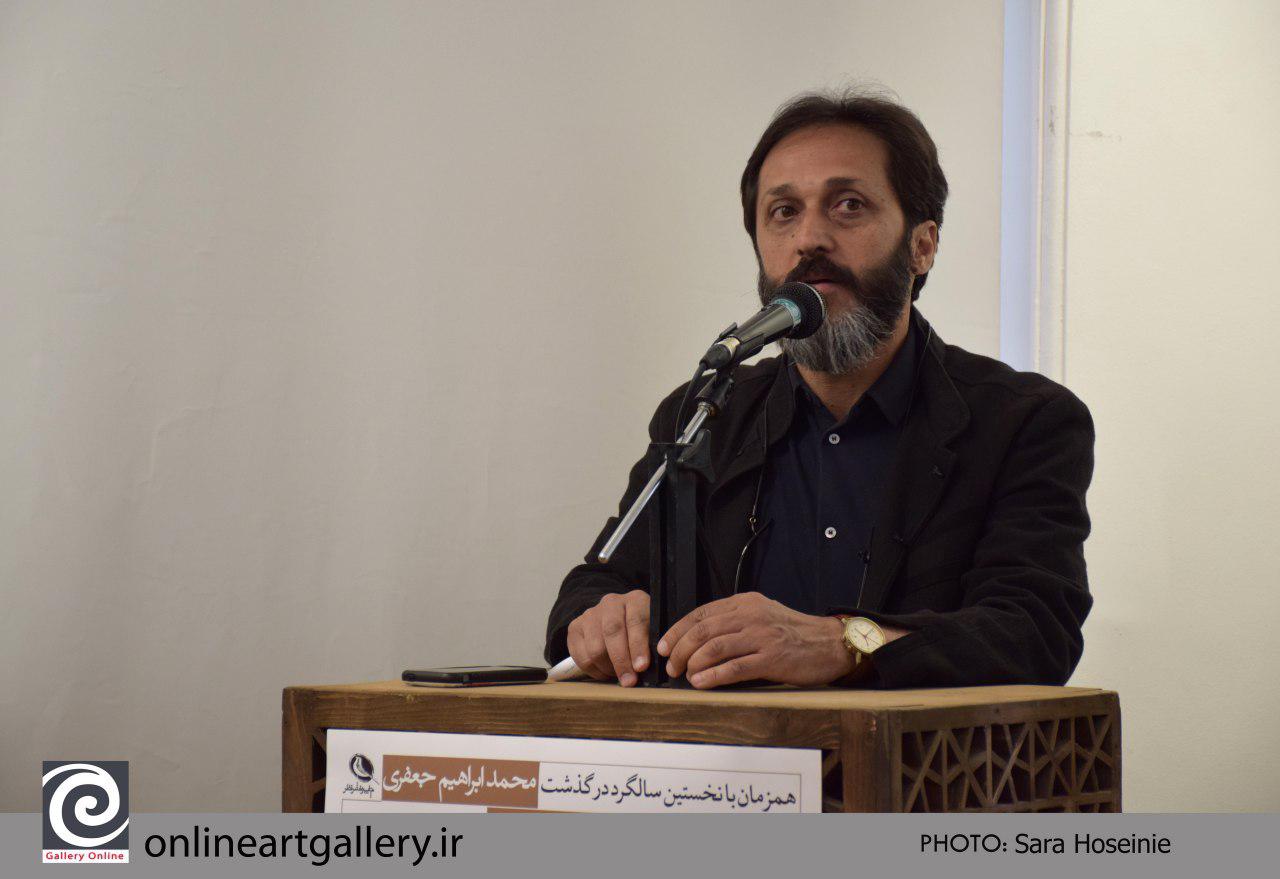 به گزارش گالري آنلاين، در ابتداي مراسم، محمودرضا بهمن پور، مدير نشر نظر و از پيشروان عرصه هنر ضمن تقدير و تشکر از مريم محمدي، همسر محمدابراهيم جعفري که در گردآوري کتاب گزيده اشعار استاد جعفري زحمت بسيار کشيد، گفت:کتاب اشعارِ بوي کاهگل، آواز پرنده محمدابراهيم جعفري، نتيجه تلاش جدي مريم محمدي است. همچنين پرستو رجايي نيز براي نگارش کتاب زندگينامه محمدابراهيم جعفري تلاش مضاعفي کرد. کتاب وي نمونه اي نادر از کتاب زندگينامه نويسي درباره يک هنرمند است. اين کتاب بسيار شبيه قصه هاي هزار و يک شب است و به شکل عجيبي زندگي محمدابراهيم جعفري، که يک شخصيت کاملا متمايز و يک انسان پر از شور و شاعري و عشق است، را نشان مي دهد. اگر کسي با اين استاد آشنايي نداشته باشد، با خواندن اين کتاب، مي تواند شخصيت متفاوت او را درک کند.