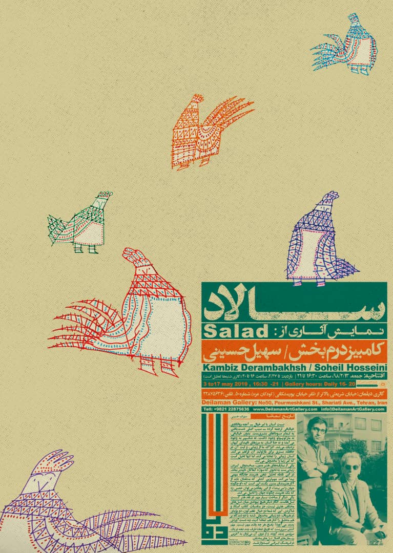 گالري ديلمان از روز جمعه 13 ارديبهشت ماه ميزبان نمايشگاه آثار کامبيز درم‌ بخش و سهيل حسيني تحت عنوان "سالاد" مي شود.