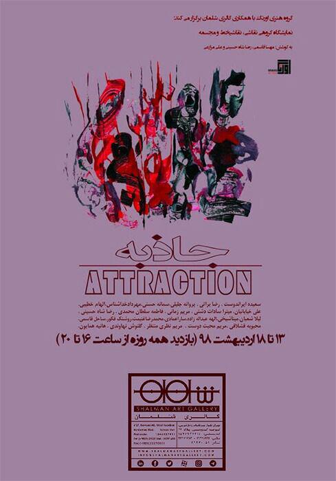 "جاذبه" عنوان نمايشگاه آثار گروهي از هنرمندان با مدياي نقاشي، نقاشيخط و مجسمه است که از روز جمعه 13 ارديبهشت ماه با همکاري گروه هنري اورنگ و گالري شلمان برگزار شد.
