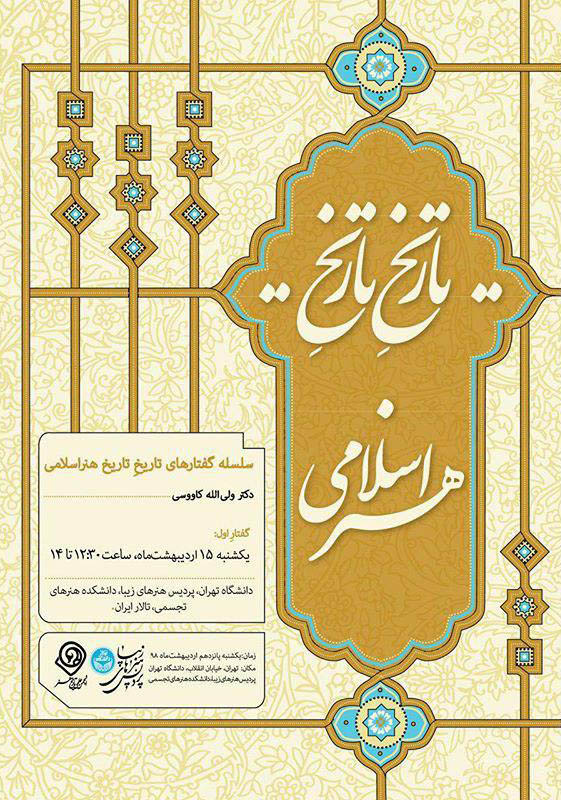 گفتار اول سلسله گفتارهاي تاريخِ تاريخ هنر اسلامي يکشنبه ۱۵ ارديبهشت ۱۳۹۸ در دانشگاه تهران برگزار مي شود.