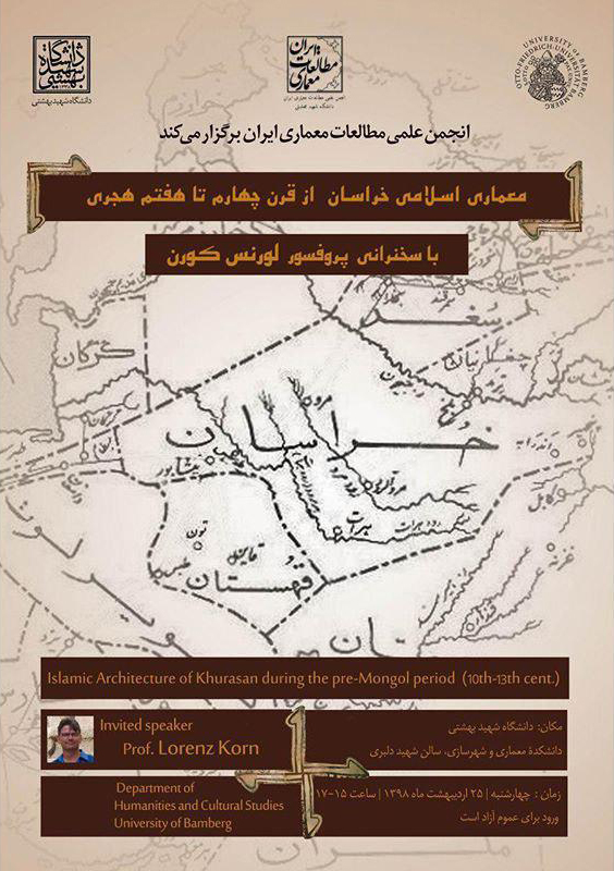 انجمن علمي مطالعات معماري ايران نشتي با موضوع "معماري اسلامي خراسان از قرن چهارم تا هفتم هجري" را در دانشگاه شهيد بهشتي برگزار مي کند.