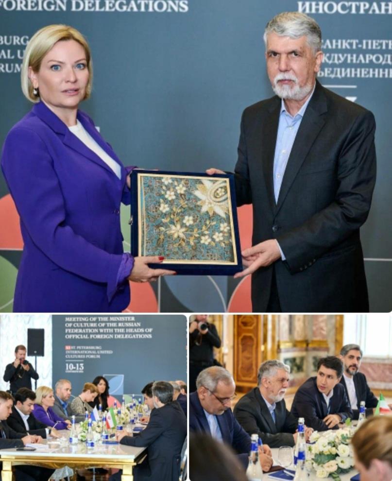 ديدار وزير فرهنگ و ارشاد اسلامي و وزير فرهنگ روسيه در سنپترزبورگ با توافقات تازه طرفين از جمله در زمينه برگزاري رويداد هفته فرهنگي ايران در اين کشور در سال ۲۰۲۶ ميلادي همراه بود.