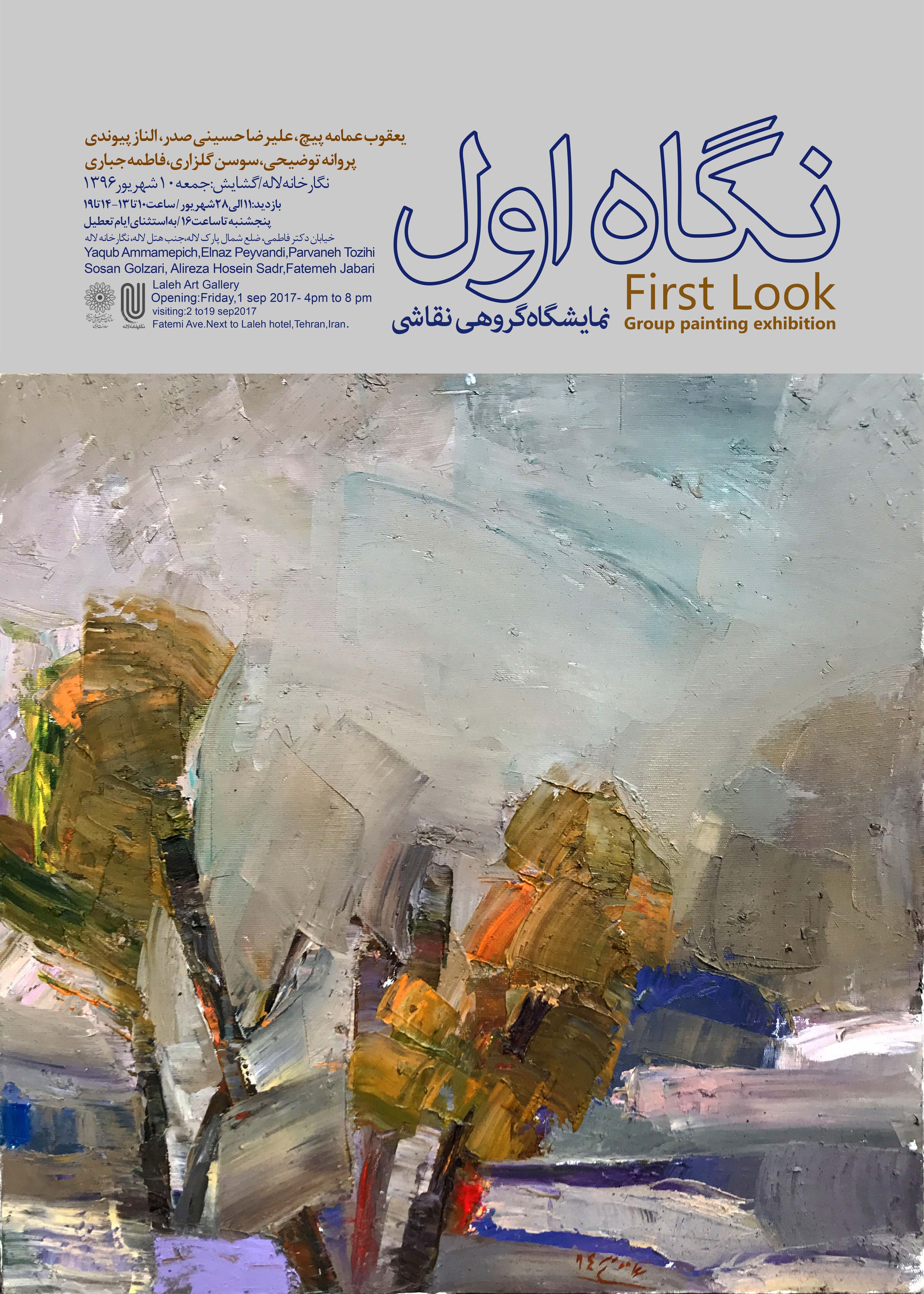 به گزارش گالري آنلاين ، نمايشگاه ˝ نگاه اول" با 38 اثر نقاشي از يعقوب عمامه پيچ ، عليرضا حسيني صدر، الناز پيوندي پروانه توضيحي، سوسن گلزاري و فاطمه جباري روز جمعه 10 شهريور1396 در نگارخانه لاله افتتاح شد.
