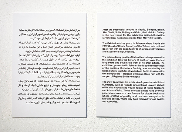 به گزارش گالري آنلاين به نقل از روابط عمومي نگارخانه لاله، ايتاليا به عنوان ميهمان افتخاري، امسال در نمايشگاه بين المللي کتاب تهران حضور داشته و به همين مناسبت با دعوت انجمن تصويرگران ايران اين نمايشگاه ساماندهي شده است. شايان ذکر است برنامه ريزي اين مجموعه توسط موسسه فرهنگي ايتاليا در مادريد و برلين با همکاري نمايشگاه کتاب کودک بلونيا انجام شده و پس از برگزاري نمايشگاه در شهرهاي يادشده، سفر جهاني خود را آغاز کرده و پس از حضور درچندين کشور اروپايي و آسيايي،… اکنون به تهران رسيده و در نظر است پس از اتمام تاريخ نمايشگاه به چند شهر ديگر ايران نيز سفر کند.