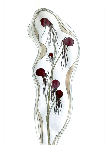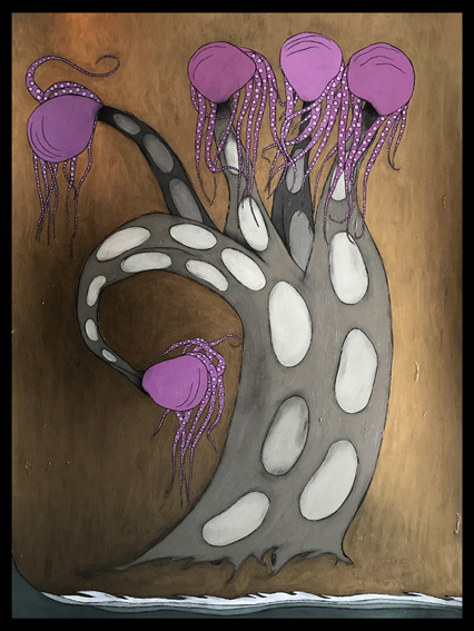 عنصر تکرار شده در بيشتر آثار، فرمي از بدن اختاپوس است؛ اختاپوس جانوري آبزي در رده سرپايان است که به دليل ساختار بدني متفاوت، DNA و بسياري ديگر از ويژگي ها، نظريه اي نسبت به فرازميني بودن آن، بيگانگي و عدم تعلقش به محيطي که به اجبار در آن حضور دارد وجود دارد.