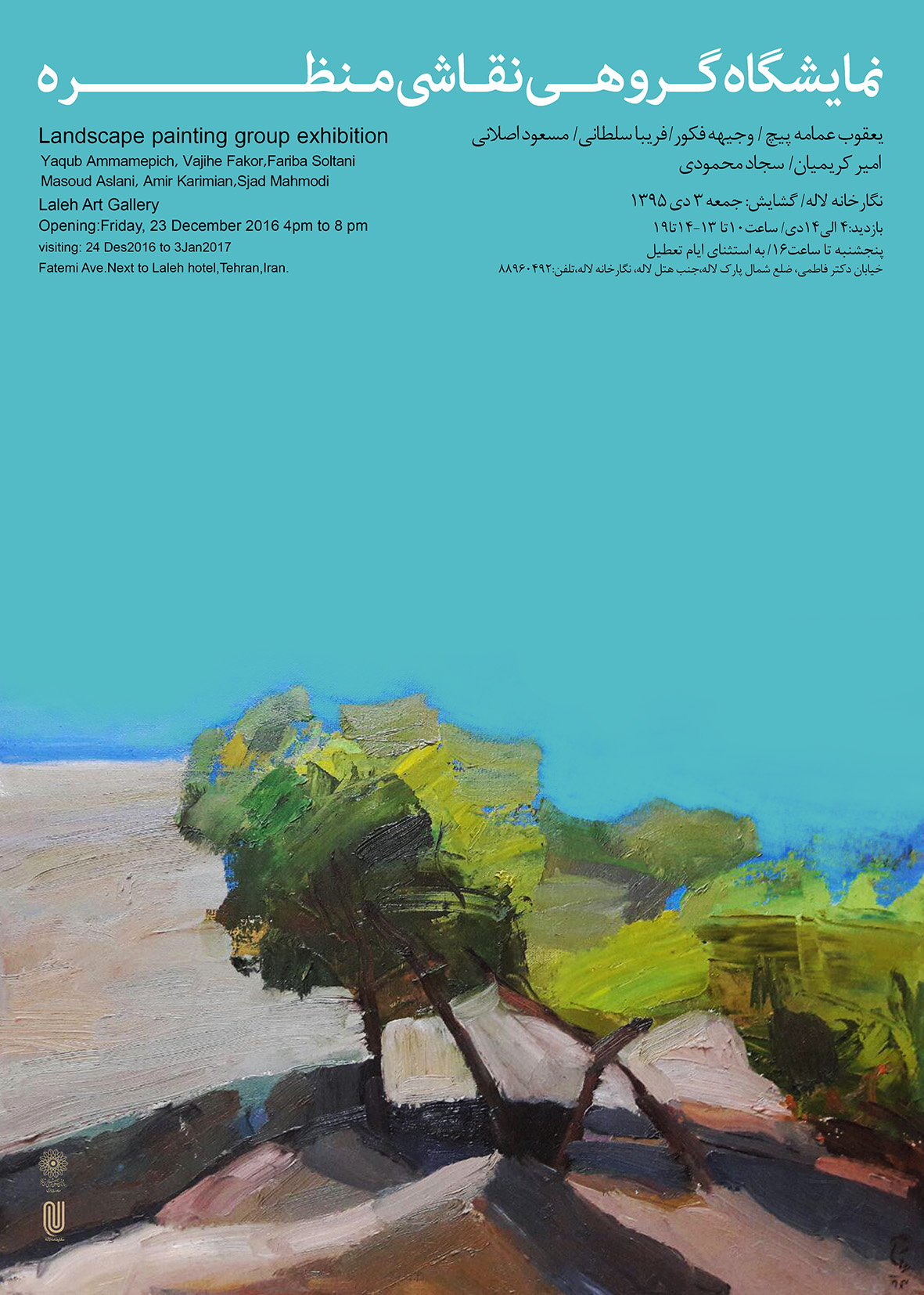 نمايشگاه ˝منظره" با 31 اثر نقاشي از يعقوب عمامه پيچ، وجيهه فکور، فريبا سلطاني، مسعود اصلاني، امير کريميان و سجاد محمودي در نگارخانه لاله برپا است.