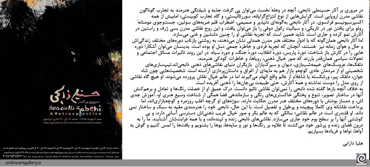 «گپي با حسين‌علي ذابحي به بهانه برپايي نمايشگاه نقاشي‌هاي او در خانه آفتاب »
