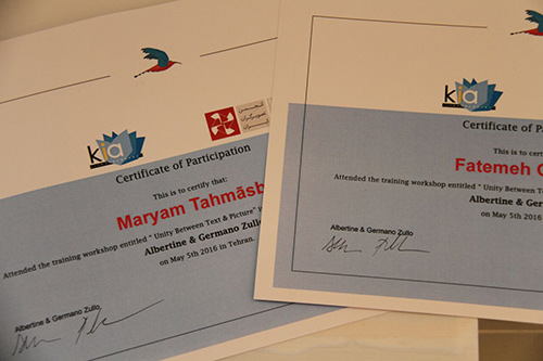 و در پايان افتتاحيه گواهي نامه شرکت در کارگاه به هنرمندان اهدا شد.