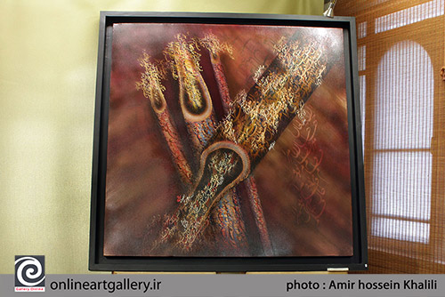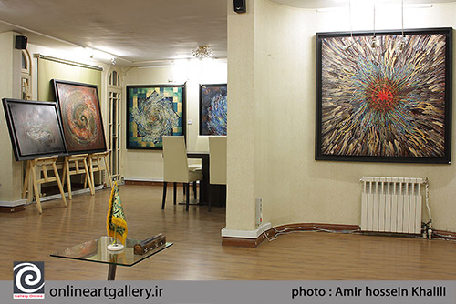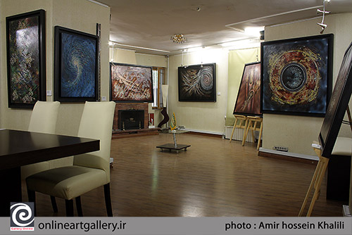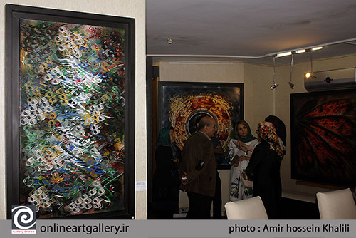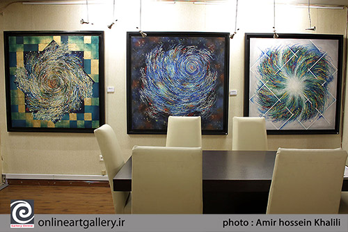 در اين نمايشگاه 17 اثر نقاشي خط در ابعاد 140 در 140 سانتي متر که با تکنيک ترکيب مواد و اکريليک کار شدهاند، به نمايش درآمده است.