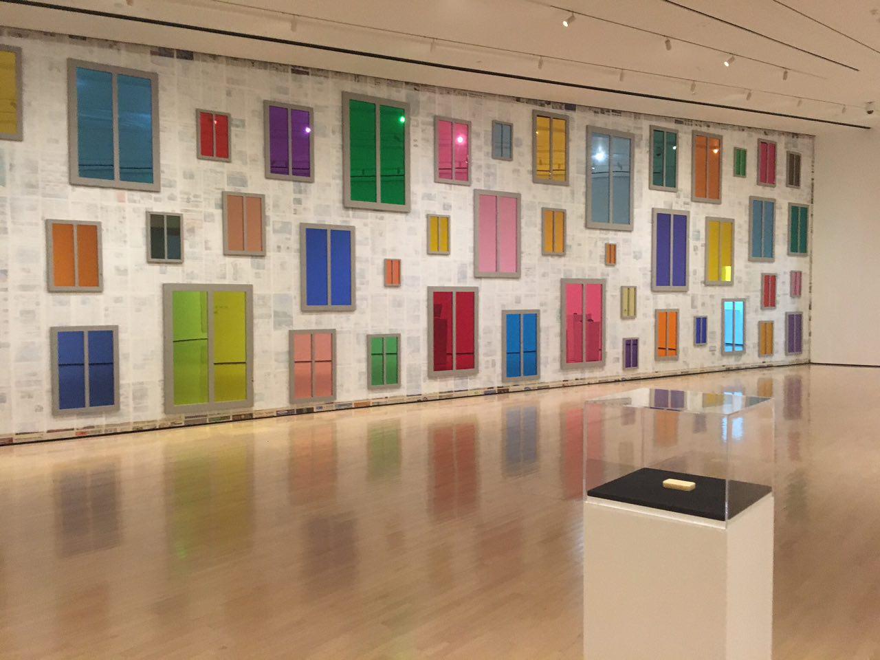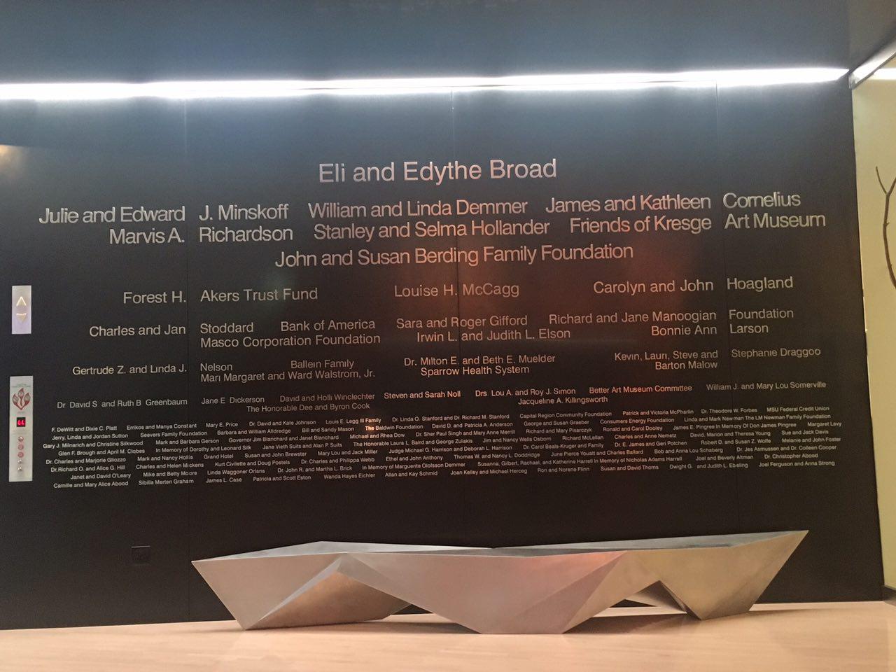 ديواري با نام همگي كساني كه از لحاظ مالي براي ساخت موزه همكاري كردند و همينطور نيمكتي استيل با طراحي زاها حديد معمار موزه.